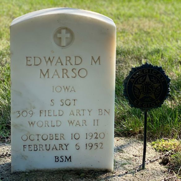 Born on October 10, 1930, to Elizabeth and Nick Marso, Edward Marso lost his mother when he was just 17. Shortly after he became engaged to Dorothy Luschen, a pretty young woman from Brunsville, Iowa. Two weeks before Christmas 1942, he, Dorothy, Dorothy’s brother Leonard and a 16-year-old girl called Clara Sawin were riding in a car driven by CJ Noonan. It seems that Noonan failed to see a railroad crossing just as a train was coming. The car struck the centre of the train and was dragged along, catching fire. Dorothy and Ed were in the rear seat and the back doors jammed. While Ed broke a window and escaped, he was unable to rescue Dorothy. She and her brother both died in the blaze, Clara suffered terrible burns to which she would succumb three days later while both Noonan and Ed escaped with minor injuries. Friends reported that he never really recovered from not being able to save Dorothy and he would remain single for the rest of his life.