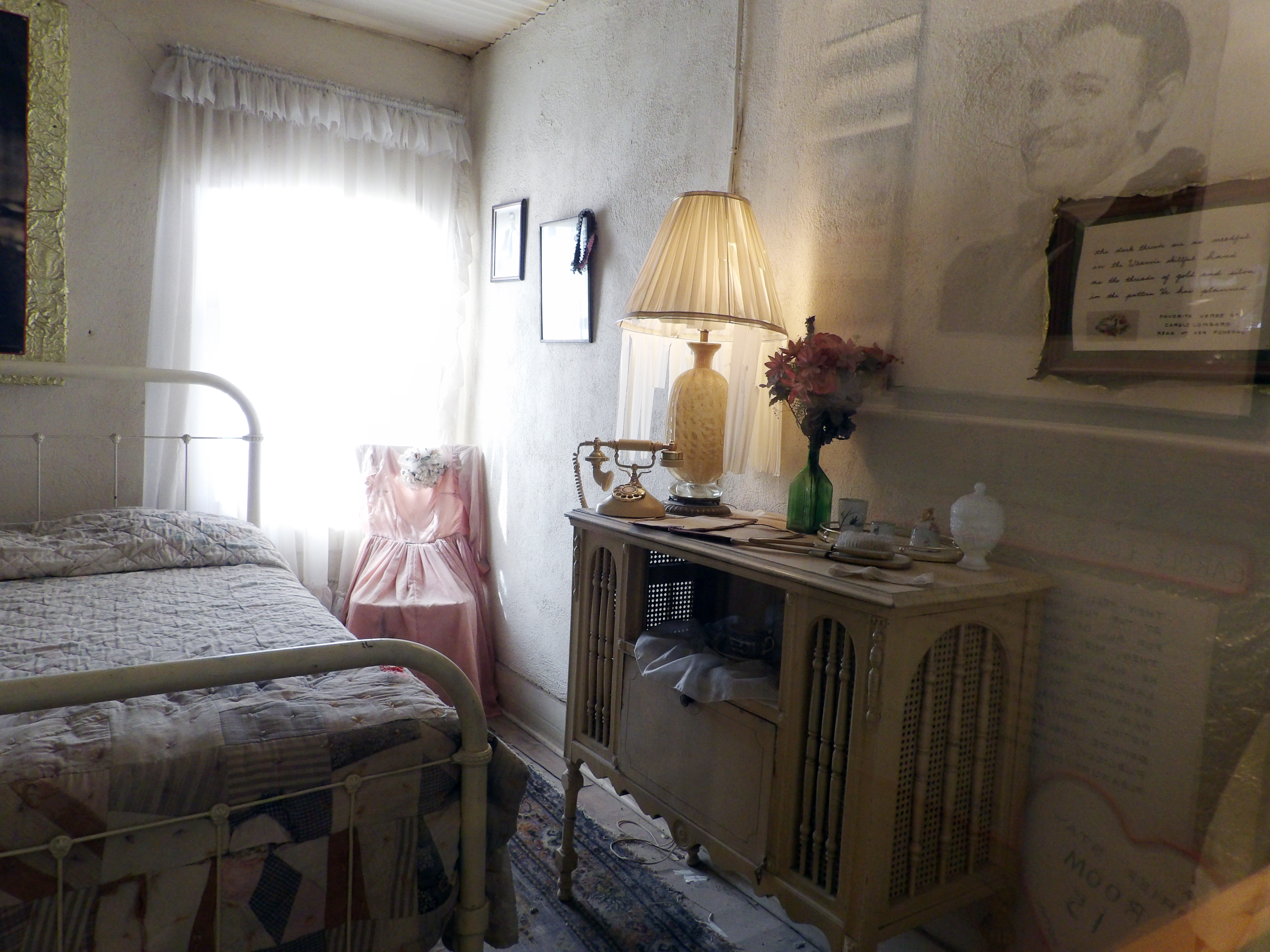 The ‘honeymoon suite’ in the hotel is just hokum. On one chair is, supposedly, Lombard’s wedding gown, a flouncy white affair rather than the tailored grey suit she wore. On the other chair is ‘Lombar’s night gown’. Except it’s pink and, according to Lombard expert Carole Sampeck of the Carole Lombard Archive, ‘Carole never wore pink around Clark (much less a nightgown!) – he loathed that color’.
