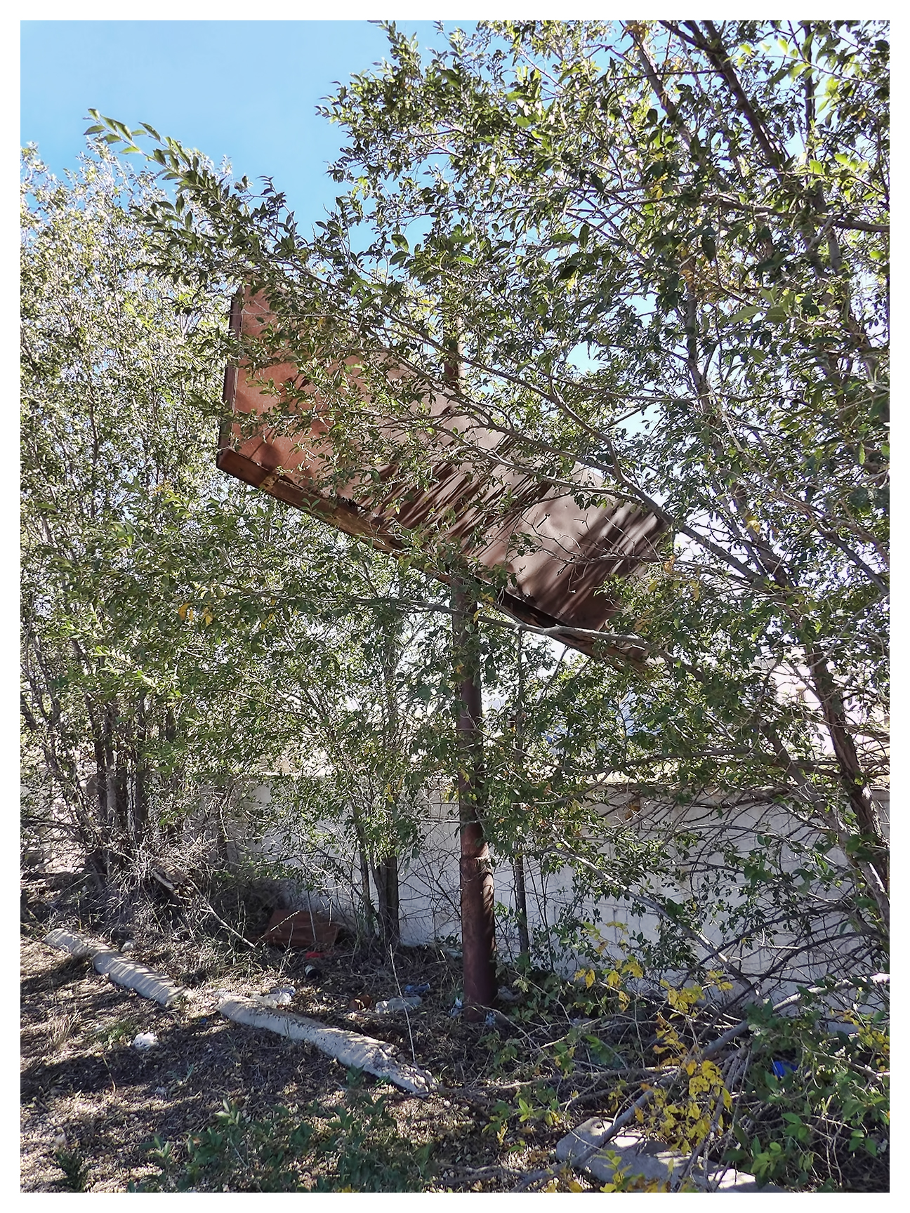 The Frontier Museum, now mostly collapsed, but still with the skeleton work of the original signs.