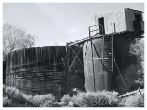 The company, however, announced its intention to continue, and then Pearl Harbor happened. The advent of fuel rationing in the following spring made it impossible for the company to run its machinery and transport its goods, even if it had been able to get the plant back up and running, which, without sufficient diesel was impossible. It was abandoned, although some of the machinery remained for several years. Today, the only visitors are those wielding aerosol cans or those who’ve glanced up from Highway 95 and been curious enough to drive the deteriorating track.