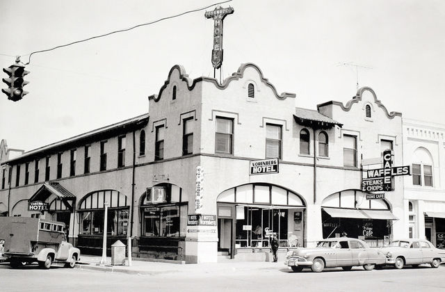 But within a couple of months it failed and all the fixtures and fittings were auctioned off in April 1961. The building and its neighbour housed many businesses over the years but by 1980 it was in poor repair. When a section of the outside wall gave away and crashed down onto a pickup truck, the owners, the American National Bank, had the building demolished in 1981 to make way for an employees’ parking lot. And that is the space on North Main.